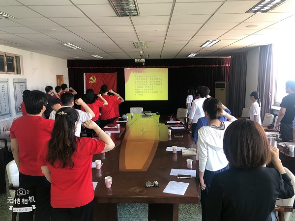 签约仪式结束后,全体党员共同观看了《“百炼成钢”:中国共产党的100年》纪录片选集,党员们通过纪录片再次回顾中国共产党波澜壮阔的历史,感受革命先辈心怀人民的伟大胸襟以及对共产主义事业的崇高信仰,感到心潮澎湃和热血沸腾,进一步激发了大家爱党、爱国的热情和干事创业的激情。观影后那种酣畅淋漓的爱国情怀还在心中激荡,全体党员同志怀揣着历史的使命感和责任感,在鲜红的党旗下,庄严地举起右手,握拳宣誓,重温入党誓词。活动使在场所有党员再次接受了心灵的洗礼,铭记庄严的承诺,牢记共产党员的政治责任、工作担当和光荣使命。