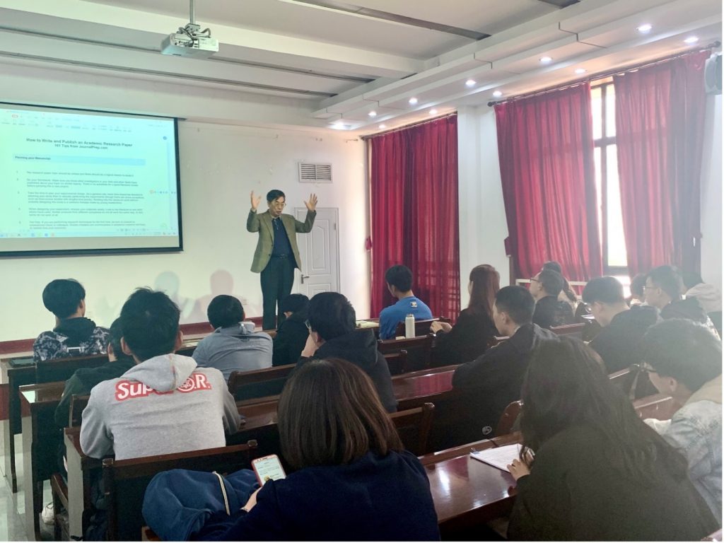 马建国教授首先强调了学术创新对于课题研究的重要性,然后向同学们重点介绍了学术论文的写作过程、修稿过程以及关于学术论文写作的一些详细的写作指南,包括选题、引言、摘要、结论等部分的内容与格式的讲解。报告的最后,马建国教授向同学们提出了几点关于论文写作的忠告并且推荐了h视频相关的文章供同学们阅读学习。
