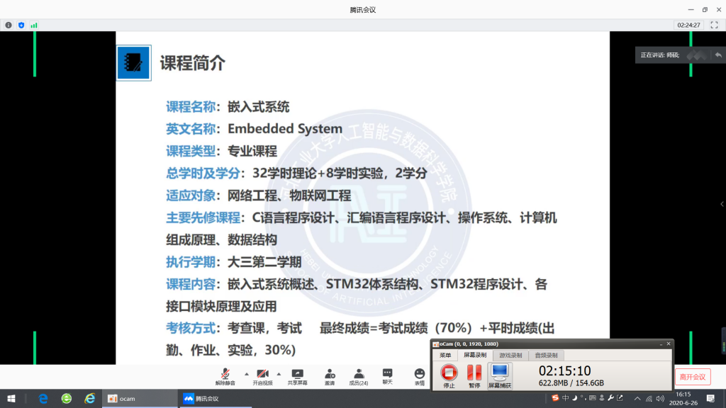师硕老师介绍《嵌入式系统》课程思政的案例设计,启发学生用辩证性思维去思考存储系统的设计;介绍了计算机系统中一般规律、特殊规律和时间管理,引导学生思考日常生活中的时间管理问题;通过诺将获得者屠呦呦的例子告诫学生科学研究要有计划、过程严谨。