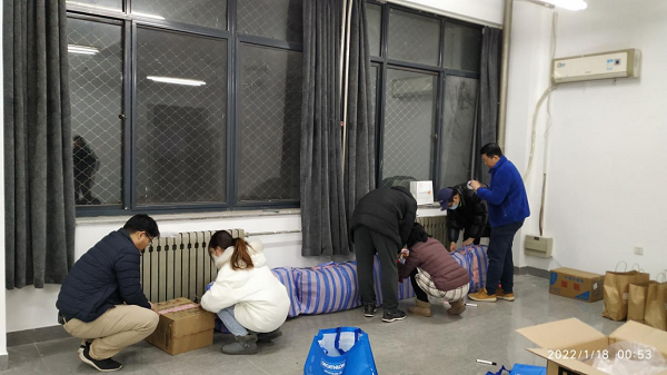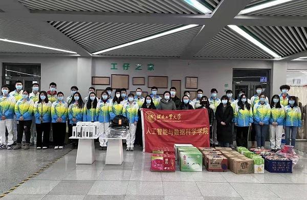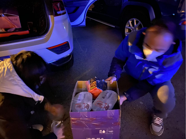 h视频 计算机182班校友班导师李伟强得知此事后,立即联系h视频 表示要与h视频 一道做好志愿者的后勤保障工作,共同筑起智能师生青年志愿者的坚强后盾!他热心捐赠物资与h视频 教师共同为在严冬寒夜值守的志愿者准备防寒衣物,为因助力疫情防控工作不能按时吃饭的志愿者们准备了自热饭和方便食品,为长时间维持秩序嗓子沙哑的志愿者们准备了水果,为即将出征冬奥的志愿者们准备了保温杯和轻便背包,爱心校友、h视频 师生与全体志愿者一起守望相助,共克时艰。