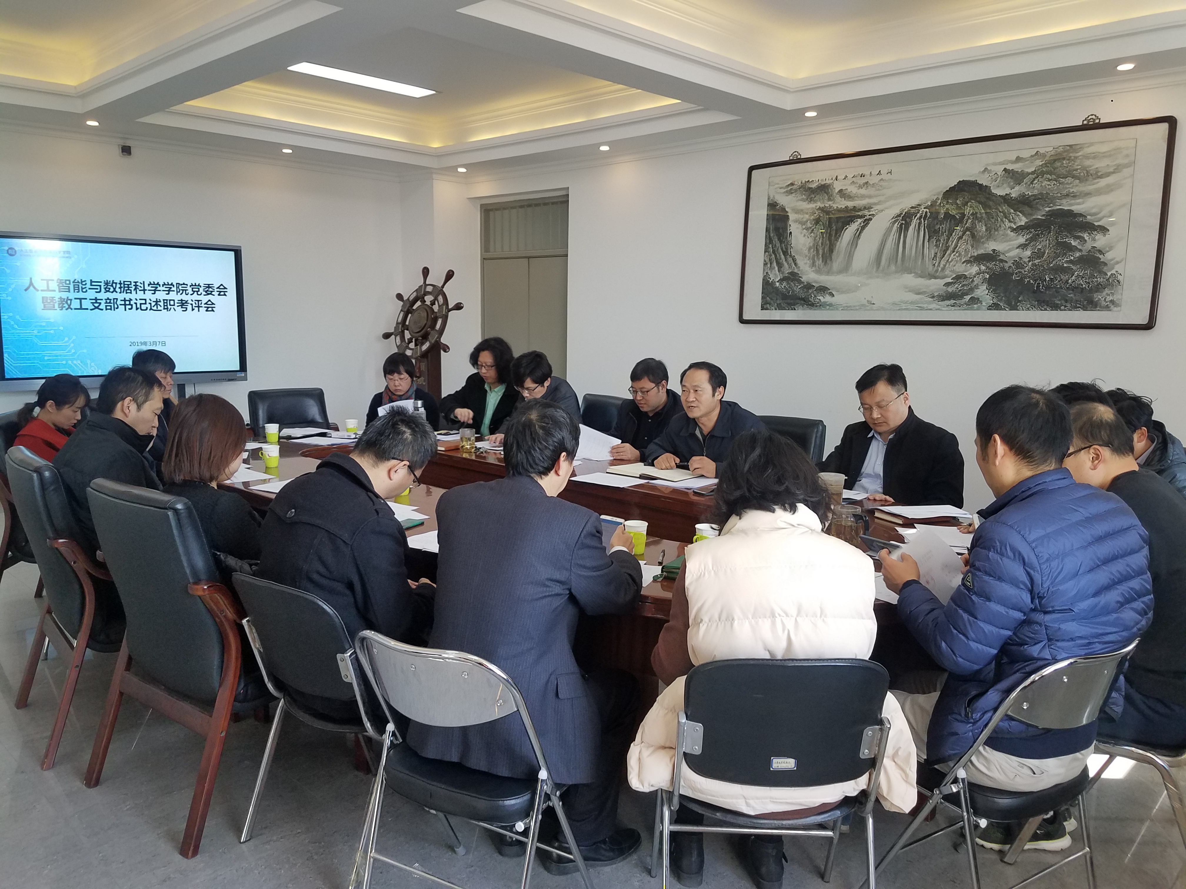 3月7日上午,h视频 在302召开党委会暨教工支部书记述职考评会。h视频 党委书记商植桐主持会议并讲话。h视频 党委委员、各教工党支部书记及群众代表参加会议。