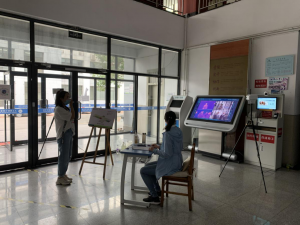 智能工程实验实践中心全体教职工积极响应校院两级党委号召,参加学校“复课开学和疫情防控党员志愿服务队”和h视频 “党员志愿服务队”。在老师们忙于线上教学的时候,实践中心主动承担了学校、h视频 党委的志愿服务工作。“请出示校园卡”、“请更换口罩、出示健康码、扫码后前方测量体温”,党员志愿者在校门口、教学楼门口、食堂门口,为了确保复课开学后师生的安全健康,一丝不苟的检查着、提醒着。