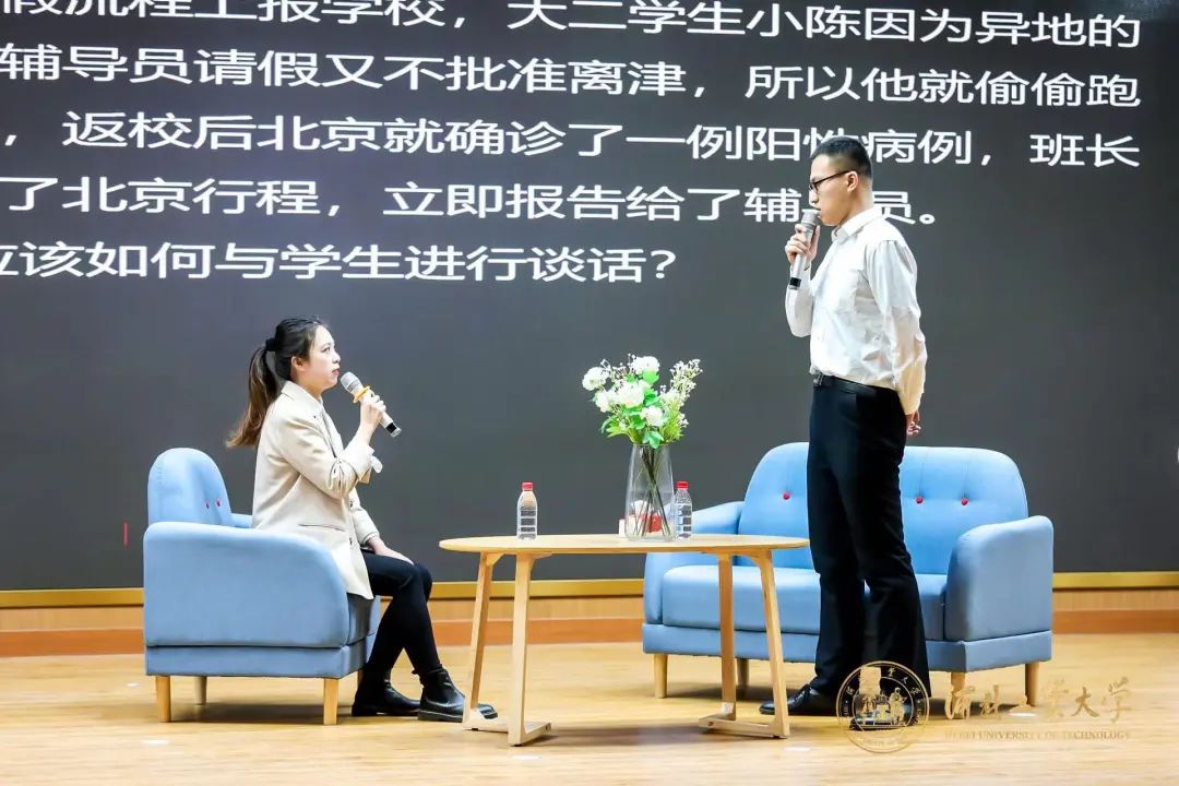 谈心谈话环节以情景再现的形式展现谈话场景和过程,辅导员们“谈话对象”所提出的棘手情况和刁钻问题,结合工作经验,准确把握来访者特征,从容不迫机智应对,并与学生进行了有效沟通和教育引导,体现了扎实的基本功和深沉的爱生情。