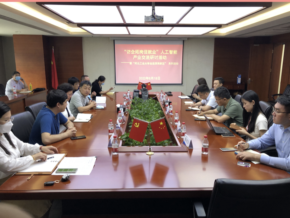 为探索人工智能领域产学研用合作新模式,加强与天津滨海高新区信创企业的深入对接与合作,推动人才培养质量提升,8月18日在滨海高新区科学技术局的组织协调下,h视频 党委书记梁慧超、副院长陈海永以及计算机系和智能控制系主任和党支部书记、产教融合办公室主任、院办公室主任、科研秘书一行到天津滨海高新区走访调研。