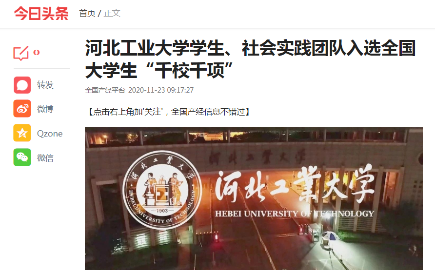河北工业大学学生、社会实践团队入选全国大学生“千校千项”