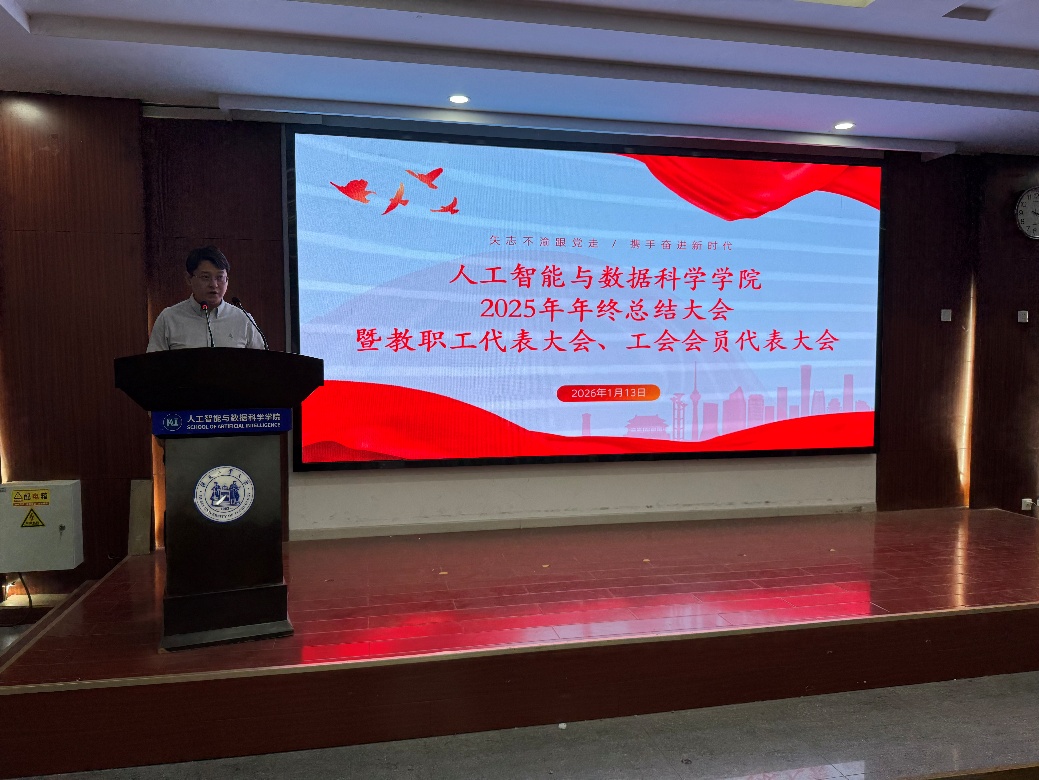 2026年1月13日下午,h视频 在西教三112会议室召开2025年度教职工代表大会、工会会员代表大会(简称“双代会”)暨全院年终总结表彰大会。h视频 全体教职工参加会议,共同回顾总结年度工作成果,谋划未来发展蓝图。大会由h视频 副书记兼副院长兰天主持。