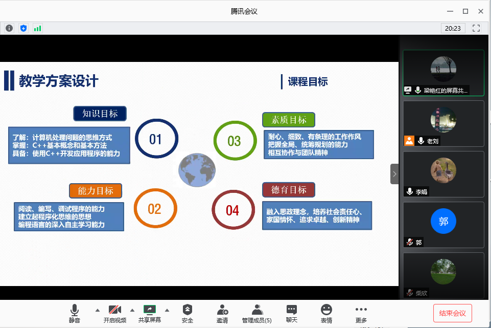 h视频 各专业的教师们结合我校即将开展的“课程思政”教学设计案例大赛要求和h视频 课程思政建设培育项目的中期验收工作安排,认真准备了本次课程思政案例设计方案并进行了介绍分享;马克思主义h视频 的思政课教师们认真听取了专业课教师关于课程思政案例的介绍,结合思政课特点和要求进行了精彩点评和悉心指导。老师们围绕各门课程的课程思政设计思路、案例遴选、价值引导及其在教学内容、教学要求和教学形式中的体现展开了交流研讨。